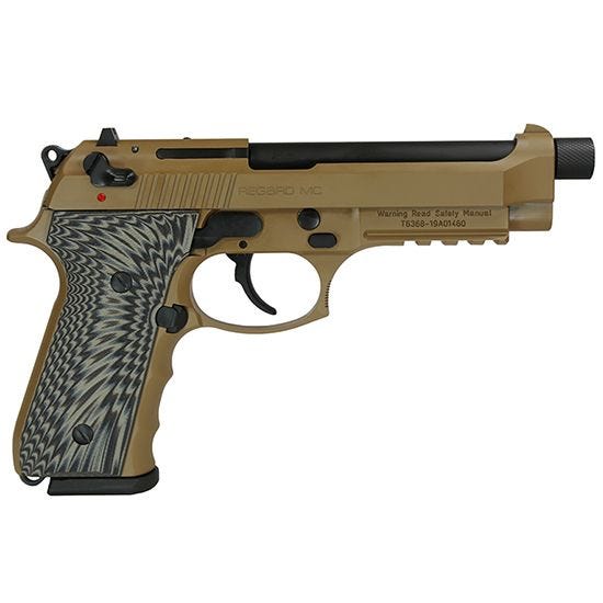 Girsan Regard Features Girsan built their Regard MC pistol line based on the Beretta® 92 pistol used by the US Military. The result is a pistol that is a NATO approved sidearm preferred by many military and police forces around the world. The Regard MC is a lightweight, full size 9mm pistol that has been proven time and again for its reliability and performance under pressure. . Girsan Regard Specifications Model:Regard FDE Type:Semi-Auto Caliber:9MM Finish:Flat Dark Earth Action:Double Action Stock:G10 Sight:Fixed Barrel Length:4.9 Threaded and Capped Overall Length:8.5 Weight:47 oz Capacity:18+1 Safety:Ambidextrous Safety/Decock Lever Receiver:Flat Dark Earth Accessories:Rail, Finger Grooved Front Strap; Accepts Beretta 92 Magazines
