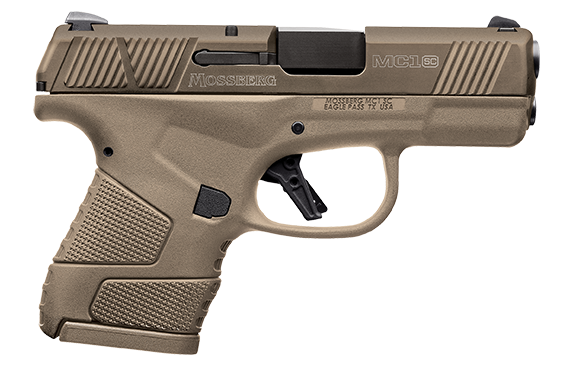 Mossberg MC1sc Features: The Mossberg MC1sc was built for concealment with its slim, dehorned profile that allows for a snag-free draw. Weighing only 22 ounces fully loaded, its lightweight and durable polymer construction is perfect for everyday carry. With its grip palm swell, the MC1sc will feel natural and comfortable in your hand. Grip panels are integrated with aggressive texturing for added control. Mossberg MC1sc Specifications: Brand: Mossberg Caliber: 9mm Luger Model: MC1 Action: Semi-Auto Barrel Length: 3.4″ Slide Description: Flat Dark Earth Stainless Steel Slide Finish: Flat Dark Earth Slide Material: Stainless Steel Capacity: 6 1 & 7 1 Frame Description: Flat Dark Earth Polymer Frame Material: Polymer Grips: Flat Dark Earth Polymer OAL: 6.25″ Sight Configuration: 3 Dot White Trigger: Flat-Profile Twist: 1:16″ Weight: 19 oz