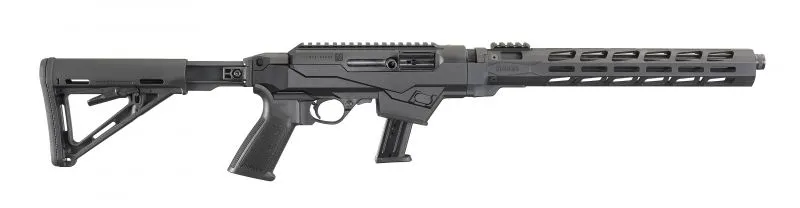 PC Carbine Features CNC-milled handguard that is Type III hard-coat anodized aluminum for maximum durability, with Magpul M-LOK accessory attachment slots on all four sides for easy mounting of M-LOK-compatible rails and accessories. Factory-installed, barrel-mounted picatinny rail allows for the forward mounting of optics. Interchangeable magazine wells for use of common Ruger and Glock magazines. Ships with SR-Series/Security-9 pistol magazine well installed and an additional magazine well accepting Glock magazines is included. Easy takedown enables quick separation of the barrel/forend assembly from the action for ease of transportation and storage. Takedown is as simple as locking the bolt back and verifying that the rifle is unloaded, pushing a recessed lever, twisting the subassemblies and pulling them apart. Dead blow action features a custom tungsten dead blow weight that shortens bolt travel and reduces felt recoil and muzzle rise. Bolt is machined from heat treated, chrome-moly steel to ensure strength, structural integrity and durability. Reversible magazine release and reversible charging handle to support ambidextrous use or one-handed control manipulation while maintaining a proper firing grip. Cold hammer-forged, chrome-moly steel barrel with ultra-precise rifling provides exceptional accuracy and longevity. The heavy contour barrel provides consistent accuracy, while barrel fluting sheds unnecessary weight and allows for quick handling. Threaded barrel with included thread protector allows for use of standard muzzle accessories. Chassis system features a flared magwell for improved magazine reloading capabilities as well as integrated, rear-mounted QD cups. Lower receiver is fitted with a six-position, telescoping, Magpul MOE buttstock on a proprietary receiver extension capable of accepting both commercial and Mil-Spec aftermarket stocks. Ergonomic pistol grip features an extended trigger reach for more precise trigger control. Glass-filled polymer chassis system, with integrated rear 7075-T6 aluminum picatinny rail, allows for the mounting of standard AR grips and picatinny rail-mountable stocks or extensions. Light, crisp trigger pull with minimal overtravel and positive reset utilizing proven 10/22 trigger components. PC Carbine Specifications Manufacturer: Ruger Family: PC Carbine Series Model: Pistol Caliber (PC) Carbine Type: Rifle Action: Semi-Auto Caliber: 9mm Finish: Anodized Finish Type: Black Stock: Collapsible / Folding Stock Stock: Magpul Moe 6-Pos Synthetic Barrel: 16.12″ Fluted BBL Overall Length: 32.25″ – 35.50″ Drilled / Tapped Rate-of-Twist: 1-in-10 Capacity: 17 plus 1 # Of Magazines: 1 Mag Description: 17 Rd. Thread Pattern: 1/2×28 Special: Threaded Barrel Model Weight: 7.3 lbs. Shipping Weight: 10.05 lbs. Safety Features: 2 Position Crossbolt Additional Info: Magpul M-lok Handguard Additional Info: Includes Thread Protector Additional Info: Flared Magwell Manufacturer Model No: 19122 UPC: 736676191222