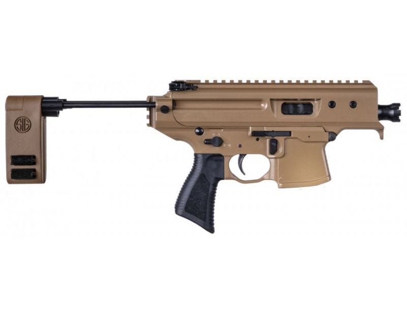 Sig Sauer MPX PDW Pistol 9MM 3.5-inch COY CO 10Rds Features: It comes equipped with the SIG SAUER Pivoting Contour Brace (PCB) giving pistol users a brace that easily adapts to the movement of the shooter’s arm with a patented swivel operation for perfect placement, and can be rapidly deployed. The SIG MPX redefines the submachine gun category with a new level of operator safety, in-field adaptability and proven reliability in the harshest environments. It features dual-sided selector switch, magazine release, charging handle and bolt release. The SIG MPX operates from a fully-closed and locked rotating bolt, offering enhanced reliability and safety in use. A short-stroke gas piston allows the SIG MPX to run all weights and brands of 9mm ammunition with no adjustments to the gas valve. Sig Sauer MPX PDW Pistol 9MM 3.5-inch COY CO 10Rds Specifications: Type AR Pistol Action Semi-Automatic Caliber 9mm Luger Barrel Length 3.5″ Capacity 10 plus 1 Sights None, Optic Ready Weight 4.5 lbs Metal Finish Coyote Cerakote Receiver/Black Barrel Overall Length 21.5″ Stock Type Folding Pistol Stabilizing Brace UPC 798681600243