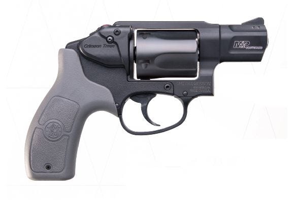 AMILY:Bodyguard Series MODEL:Bodyguard 38 Laser Grip TYPE:Revolver ACTION:Double Action Only FINISH:Matte STOCK/FRAME:Polymer Frame STOCK/GRIPS:Grey Laser Grip CALIBER/GAUGE:38 Special CAPACITY:5 BARREL:1.9″ OVERALL LENGTH:6.6″ SIGHTS:FS: Black Ramp / RS: Integral ADDL INFO:Crimson Trace Laser Grips ADDL INFO:Serrated Ambi Cylinder Release ADDL INFO:PVD Coating